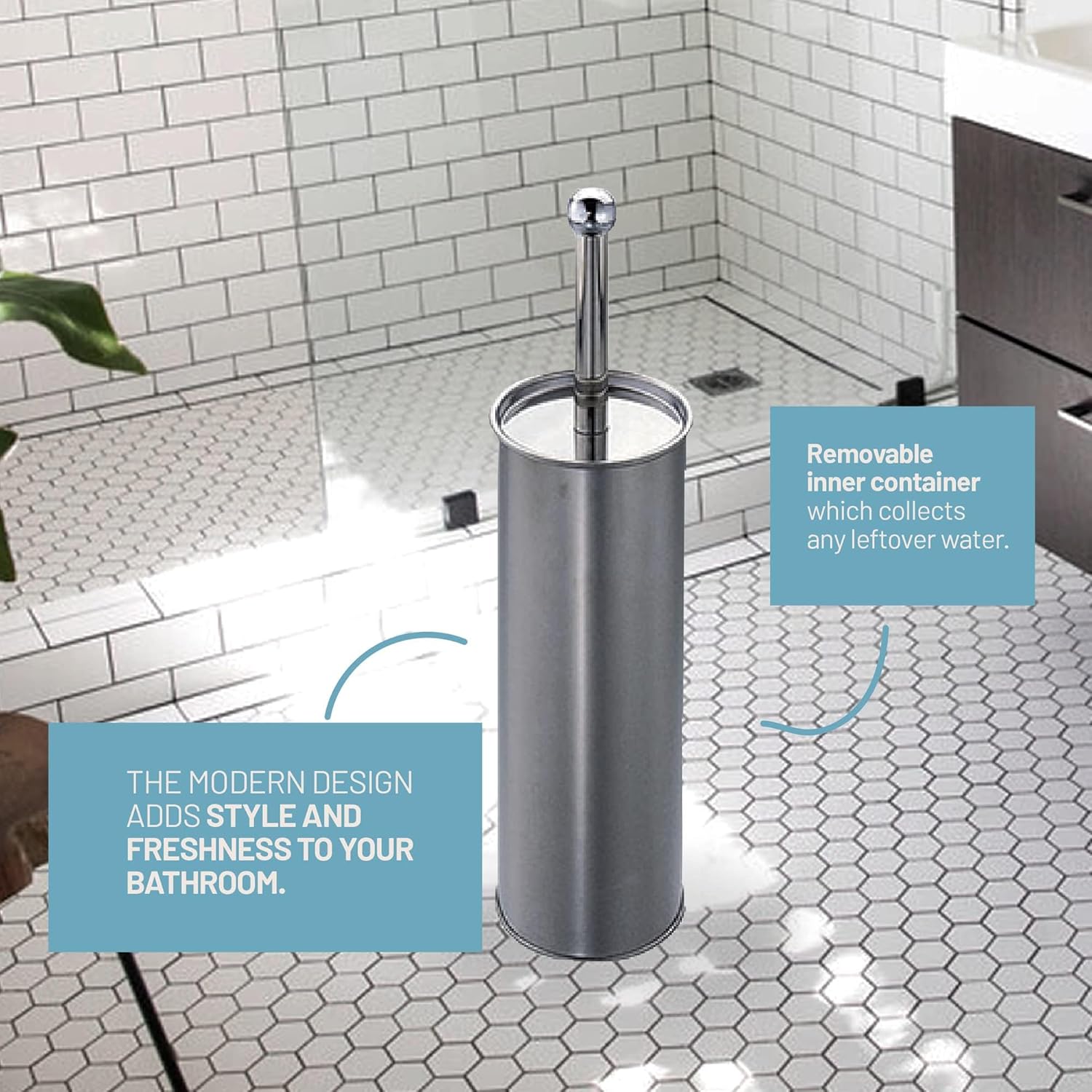 Mantenga su baño limpio y ordenado con este cepillo de baño de acero inoxidable, una solución práctica y elegante.