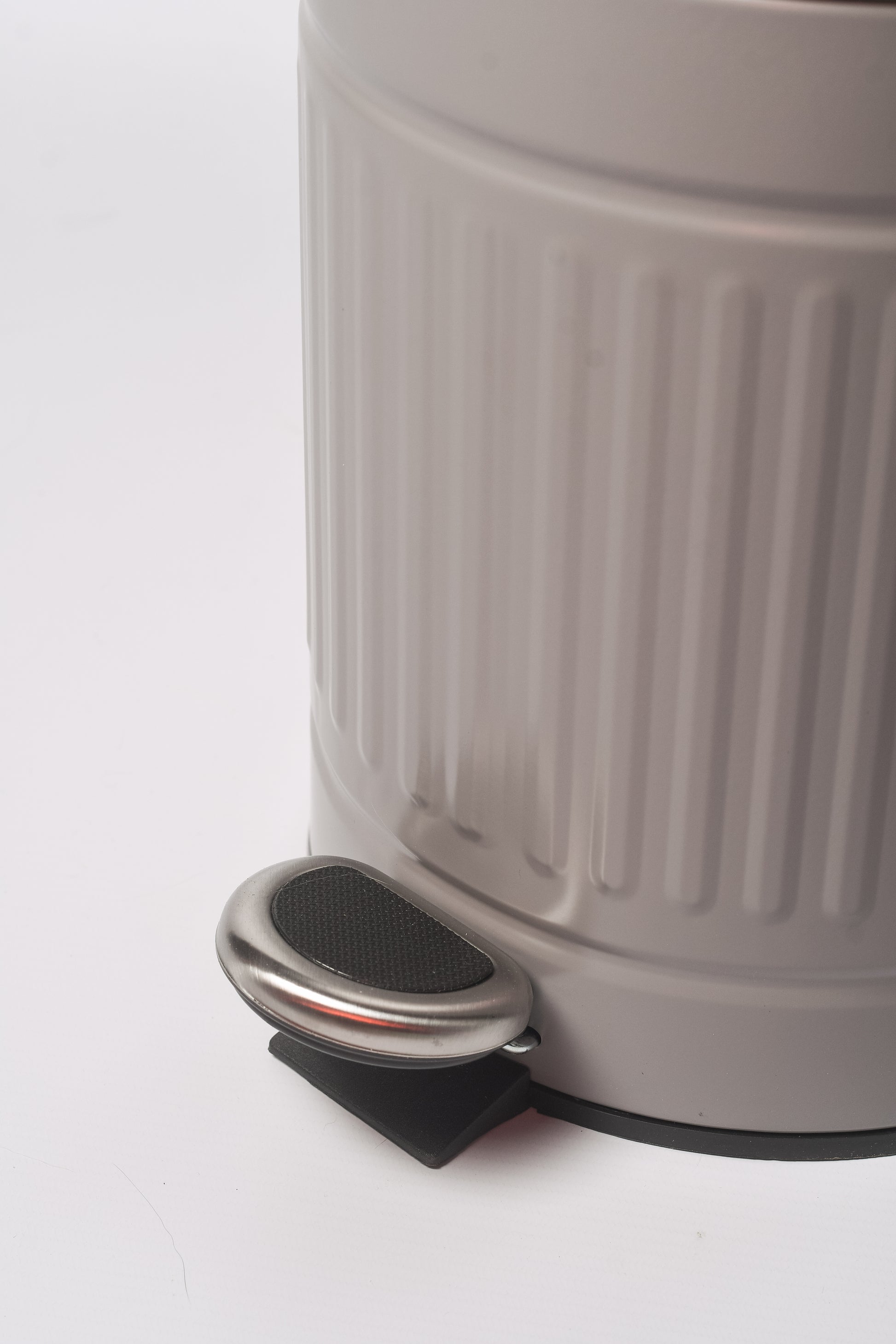 Keep your space neat and stylish with this textured gray stainless steel trash can, offering both aesthetic appeal and practical features like a soft closure for a refined waste disposal experience.